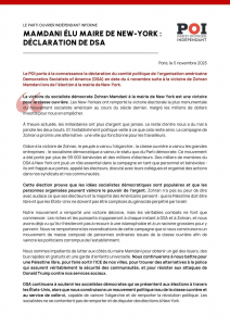 Mamdani élu maire de New-York déclaration de DSA – Communiqué du POI